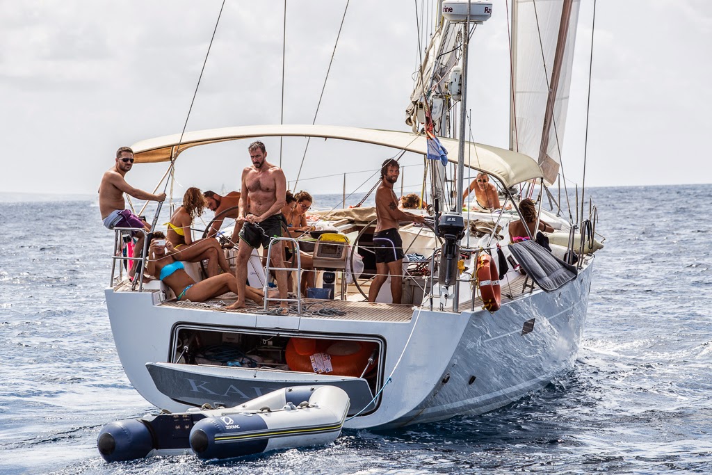 Ci imbarchiamo sabato al porto di Sant Antoni de Portmany ,giusto il tempo per conoscersi, fare cambusa e la sera si mangia tutti insieme per battezzare gli equipaggi. Domenica mattina si salpa verso la North Shore dove ci si ferma a fare il bagno sotto scogliere a picco inaccessibili da terra.