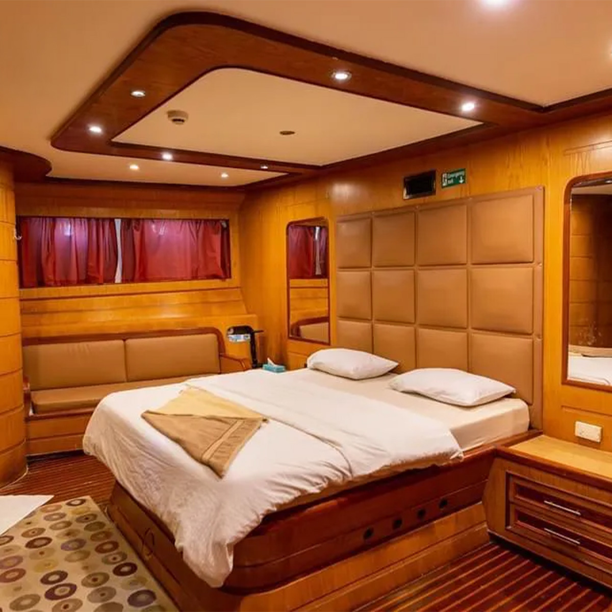 - L’imbarcazione offre anche una Royal Suite king-size e altre due Suite king-size sul ponte superiore per chi vuole concedersi quel tocco in più.