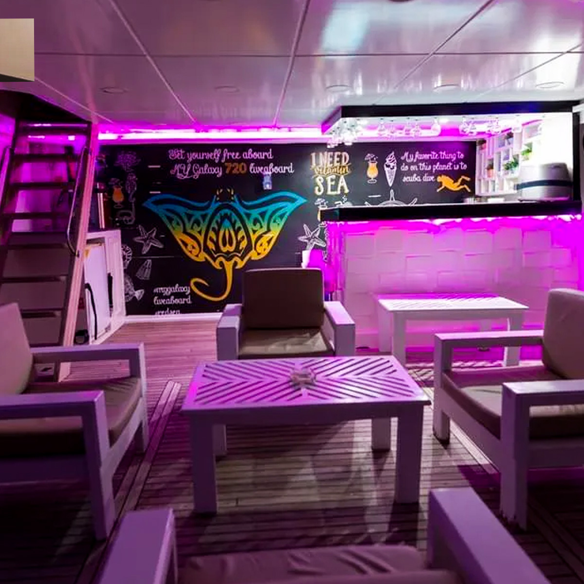 Lo yacht farà da hotel, ristorante, zona relax e ponte galleggiante per le feste. Servizio di pensione completa e housekeeping ci lasceranno il tempo di pensare solo al benessere e al divertimento: zero pensieri!