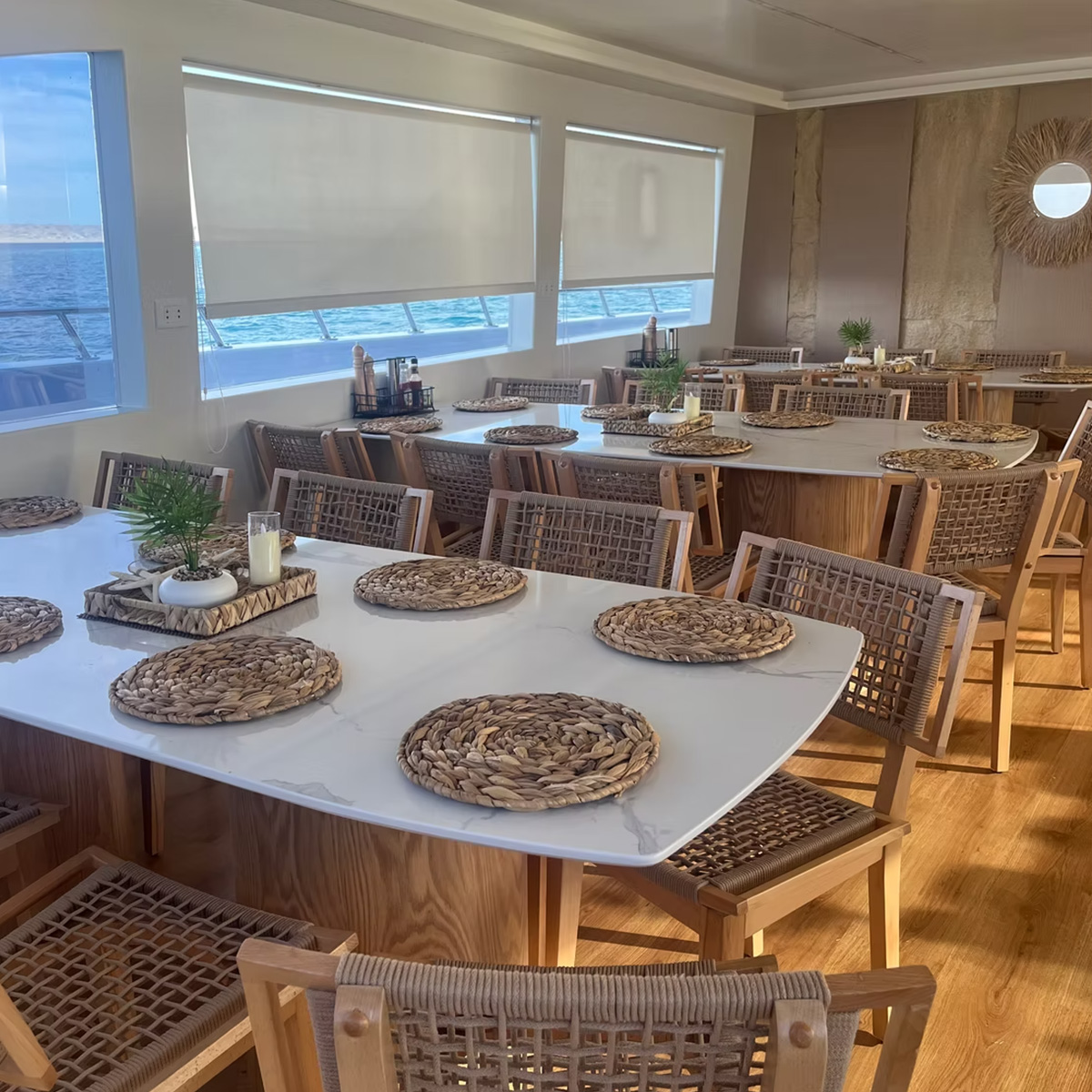 - Un ristorante climatizzato a prua dove gustare i piatti della cucina locale.